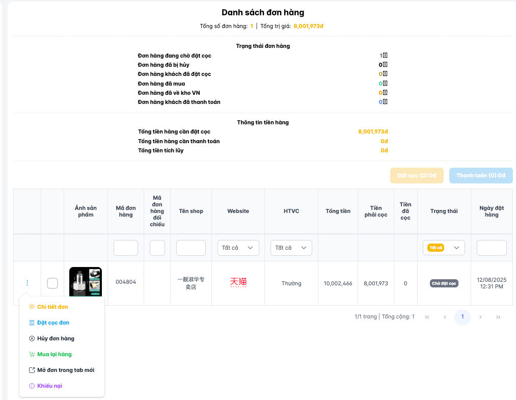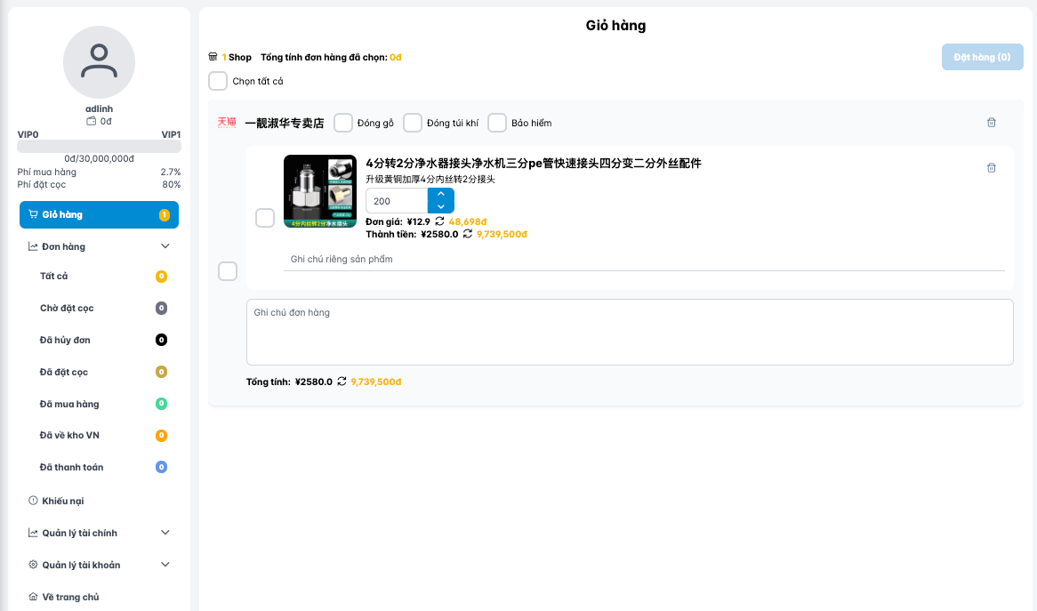 Hệ Thống Website hệ thống đặt hàng Từ Trung Quốc, Mua Hộ Hàng Từ 1688, Taobao, Tmall